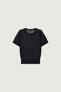 ETRETAT is a cardigan knitted in ultra-fine yarn. It can be worn directly on the skin or layered for transparency effects. Versatile, it can be dressed up or casual.